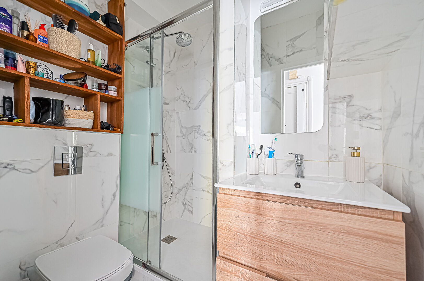 Chaque détail a été pensé pour offrir un cadre de vie agréable : un séjour lumineux et accueillant, une cuisine aménagée, une chambre avec espace bureau parfaitement intégré, un dressing optimisé, ainsi qu’une salle d’eau moderne