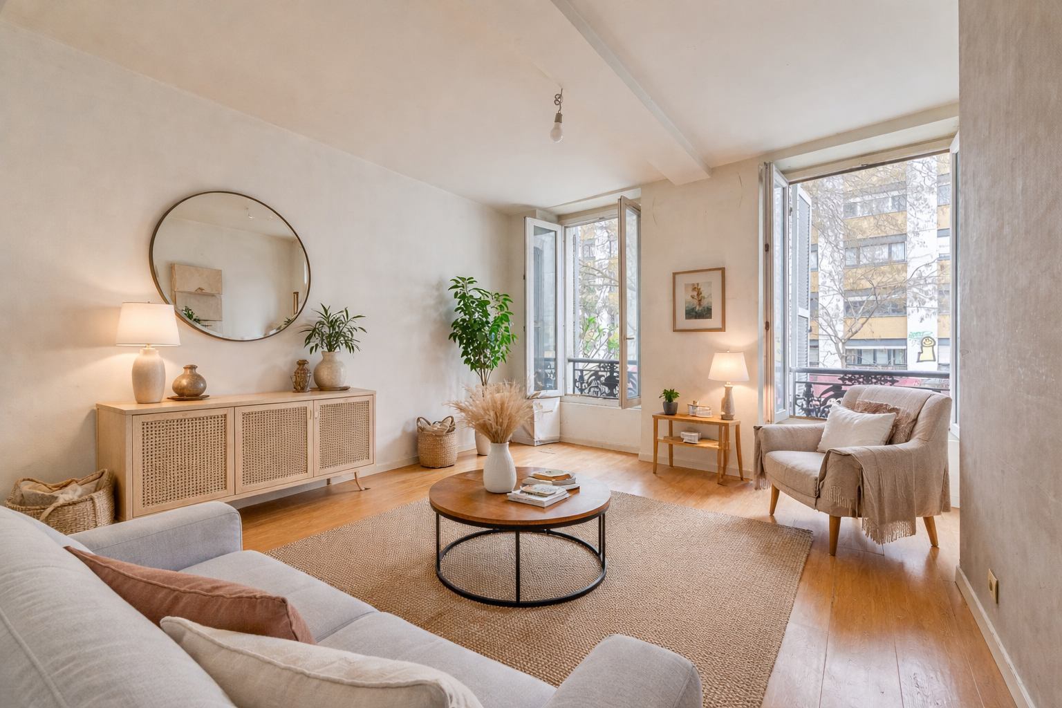 Un appartement de 2 pièces, traversant clame et lumineux,