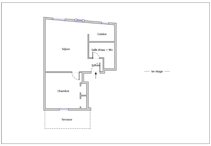 Comprenant : une entrée, un séjour, une cuisine ouverte, une chambre, une salle d’eau avec wc et une terrasse,