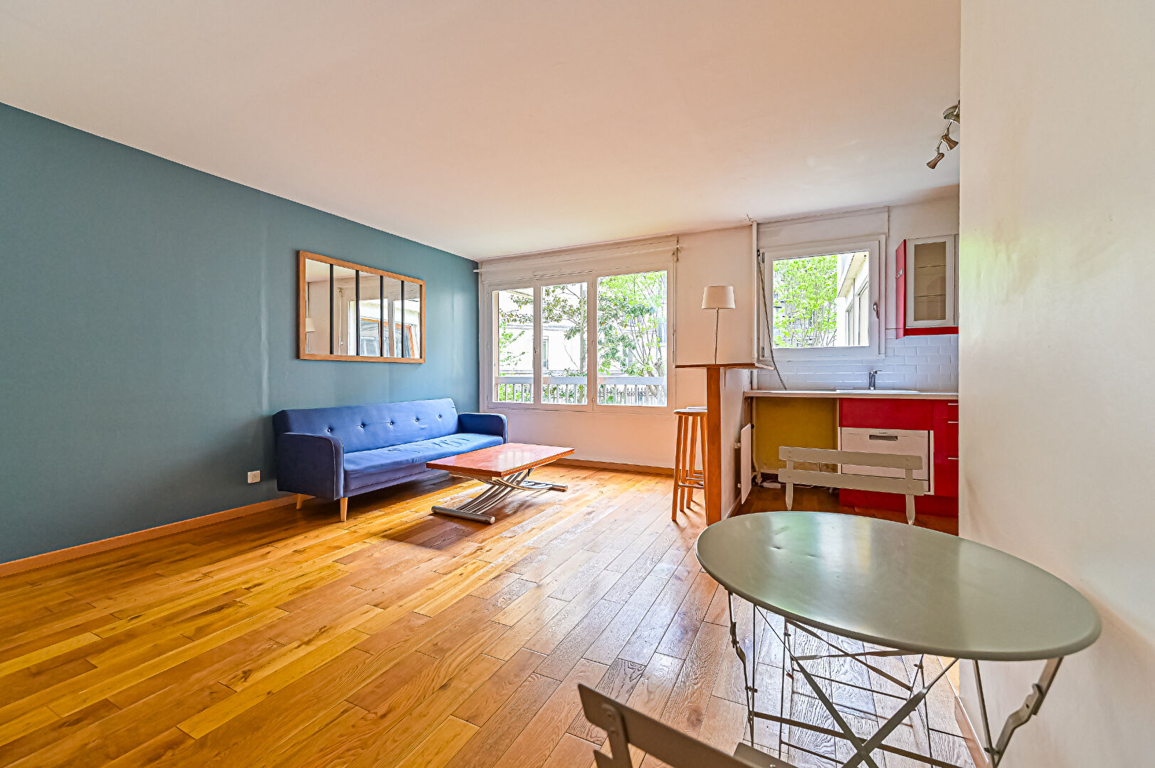 Situé au 1er étage, il se compose : un séjour, une chambre sur cour, une cuisine indépendante ouverte, une salle de douches, un WC indépendant, un séjour lumineux sur cour.