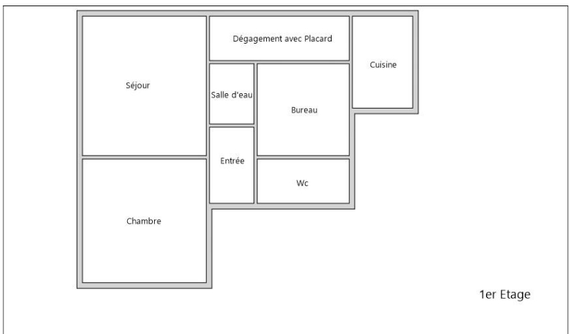 il comprend : entrée, séjour, une chambre, un coin nuit/bureau de 6m2, une salle d’eau, une cuisine séparée et wc separés
