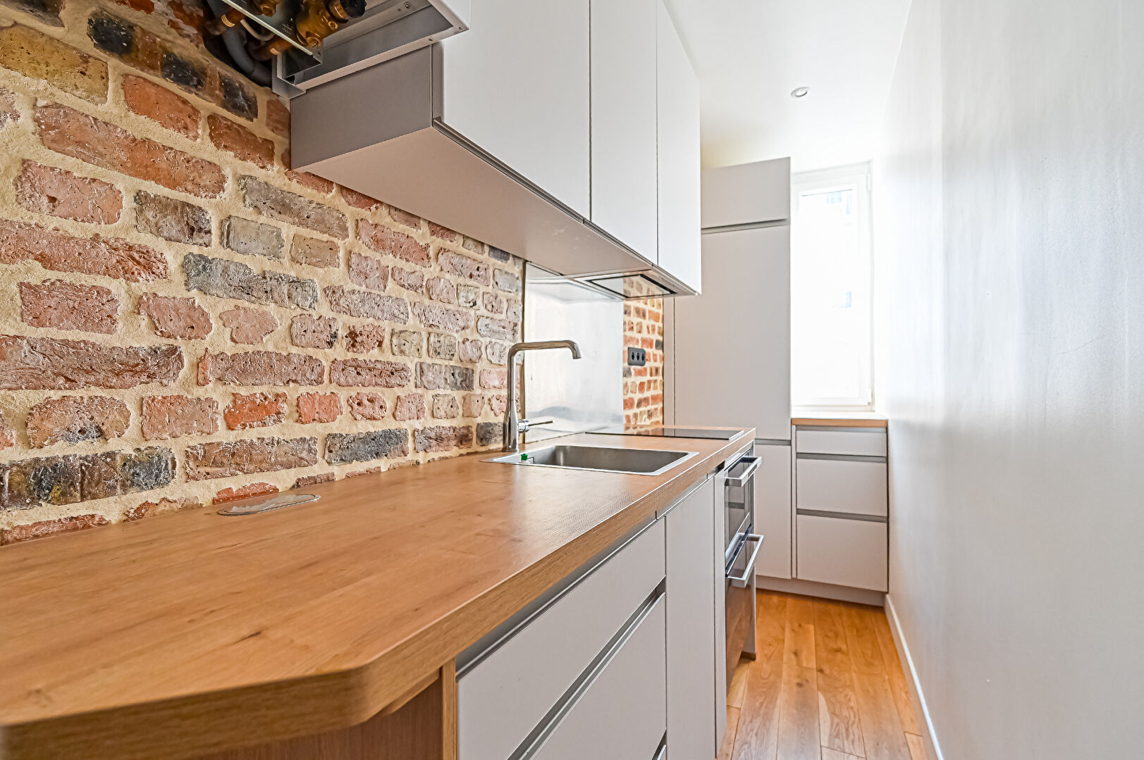 En parfait état, il se se compose : Une grande pièce à vivre, une cuisine totalement aménagée avec des équipements haut de gamme et semi-ouverte sur le séjour, une salle d’eaux avec WC, deux chambres sur rue.