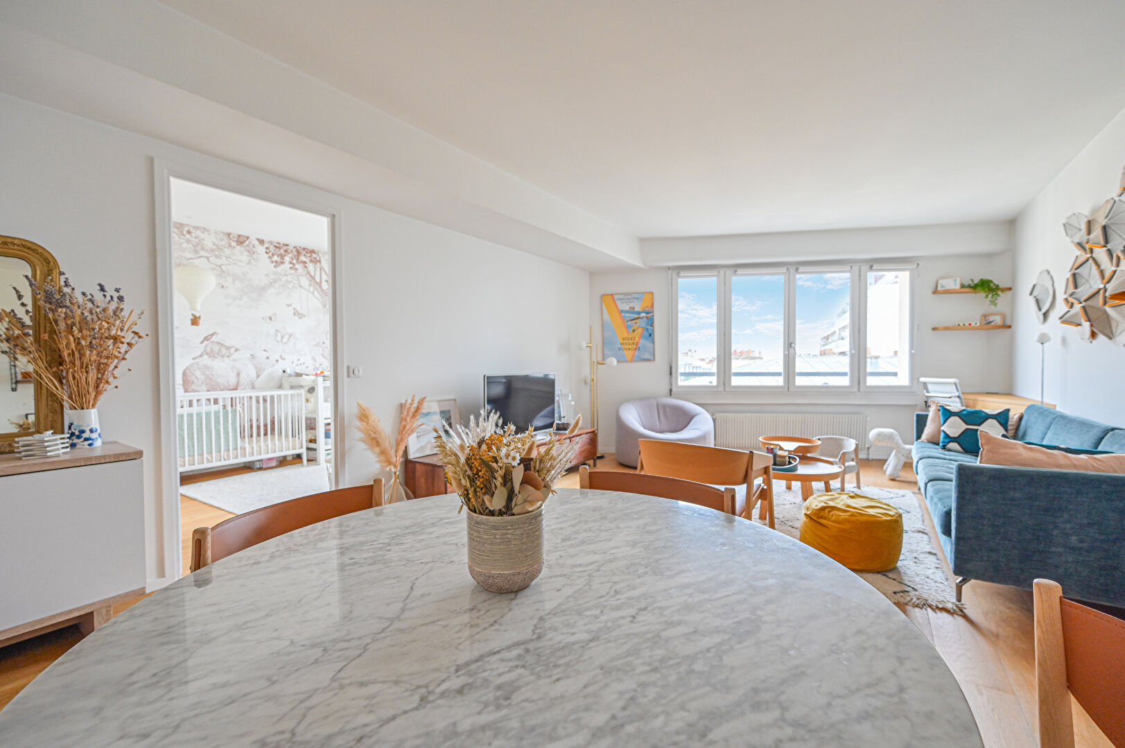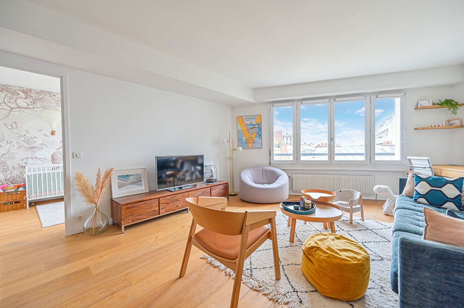 Paris 18, Grandes Carrières , au croisement de la rue Marcadet et de la Rue Damrémont, Lamarck, l’Agence Stéphane Plaza vous propose en exclusivité ce très beau 3 pièces / 2 chambres de 71m2 situé au 5 éme étage (avec ascenseur) d’un immeuble de la fin des années 60′
