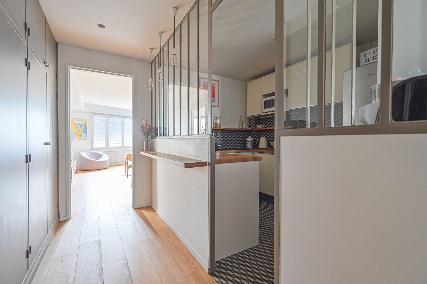 Il se compose d’une entrée avec un grand placard de rangement et un espace Buanderie. S’en suivent Un WC indépendant, une chambre sur cour avec sa salle de bains (Vasque, douche et baignoire) , puis une cuisine indépendante aménagée et équipée, un très beau séjour de 25m2 lumineux à la vue dégagée et enfin une seconde chambre avec elle aussi de grands placards sur mesure.
