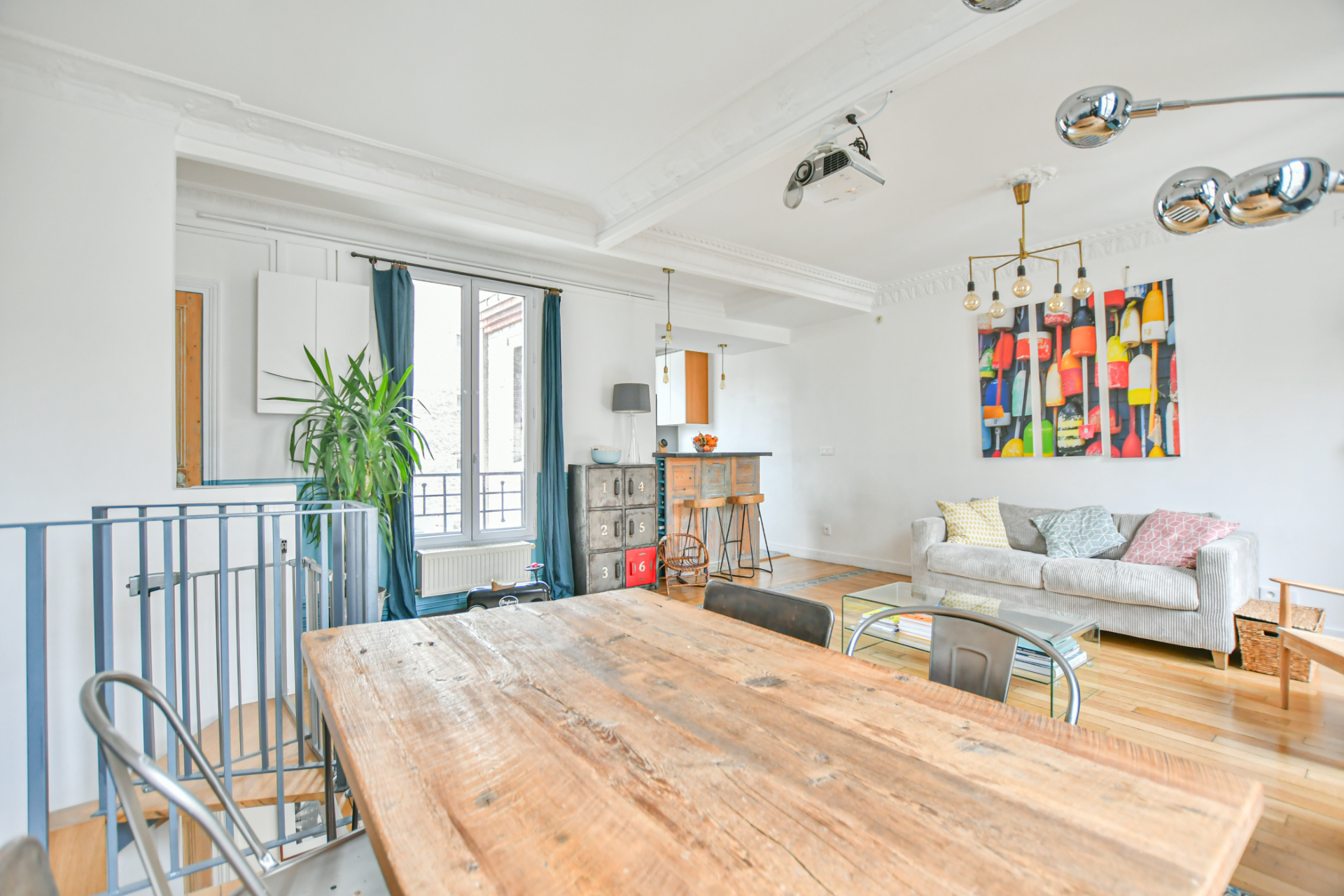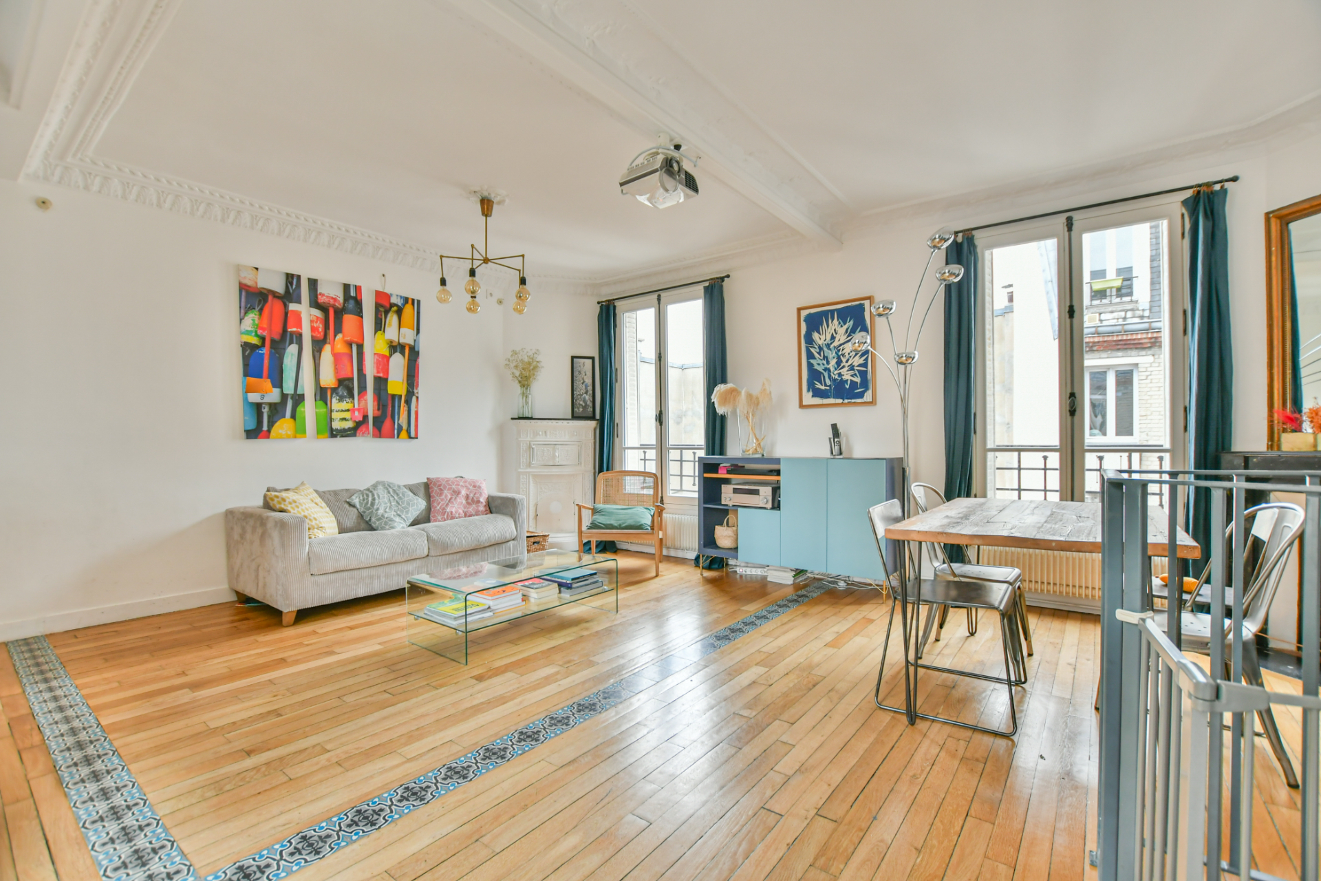 Paris 18, Julles Jofrin, au 11 rue des Cloys, L’agence Stéphane Plaza vous propose en exclusivité ce superbe trois pièces/2 chambres de 74m2 idéalement situé en duplex aux 4 éme et 5 éme étage ( sans ascenseur) d’un bel immeuble ancien.